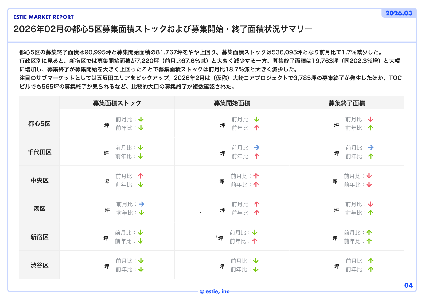 2026年3月号 エスティマーケットレポート ~ 都心5区・注目サブマーケットの動向