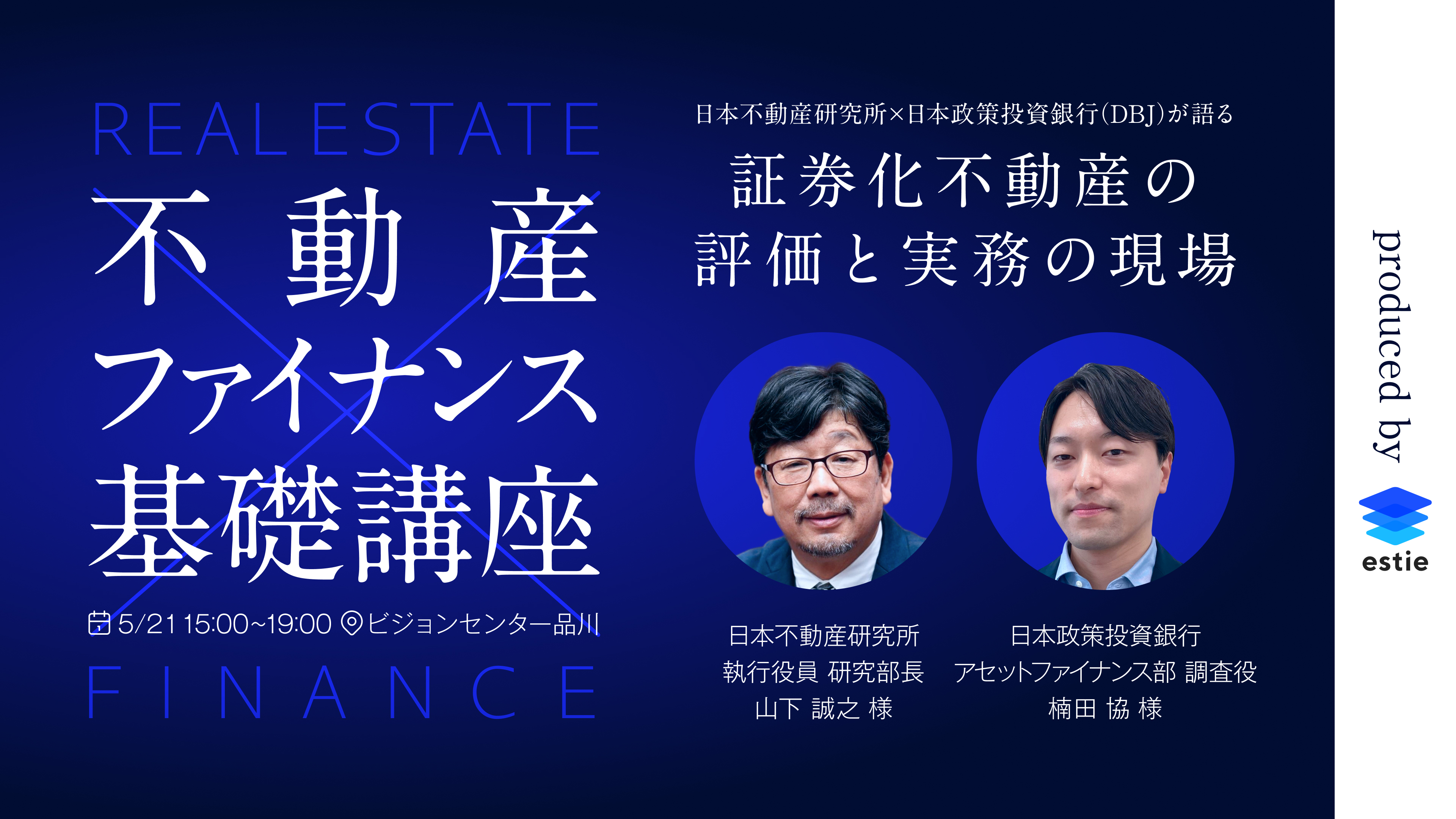 日時:2026年5月21日(木)15:00〜19:00 会場:ビジョンセンター品川 形式:講義+質疑応答(2時間30分)/ 懇親会(1時間30分) 参加費:無料 主催:株式会社 estie